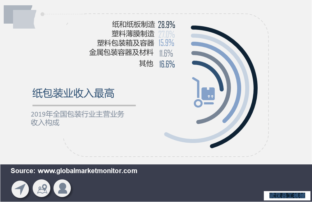 2019年,國內包裝設備制造行業的主營業務收入達到354.6億元,其中食品、飲料、醫藥是應用比例最高的三個市場,占整個包裝的65%。由于食品,飲料和藥品在宏觀經濟運作中的敏感性較低,因此包裝行業的下游需求在總體上是長期向好的,尤其是快消品領域和快遞領域業務擴張速度快。