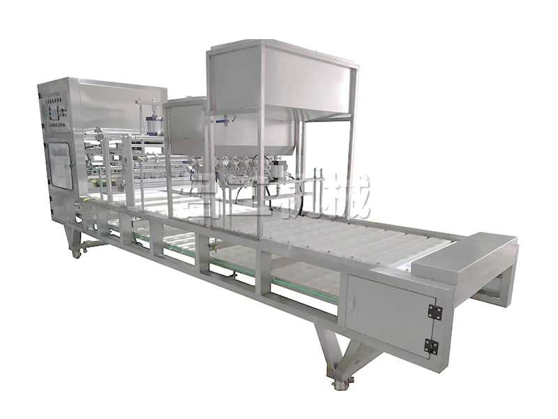 本機采用合理的機械傳動,功能齊全,灌裝、封口、切邊、制品推出,廢料收卷,印碼等自動化工作,可節約人力,降低成本。本機有二次熱封裝置,料杯/碗/盒與封膜經過前后二次熱封,封口牢固可靠。