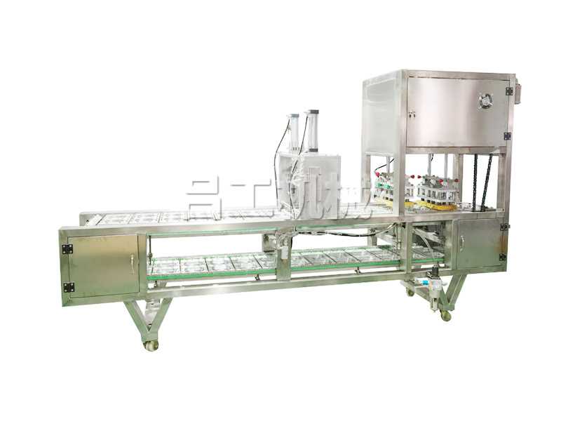 LG-280-氣調(diào)鎖鮮碗裝包裝機(jī)該機(jī)采用不銹鋼制造,適用于各種形狀的杯碗盒作容器的液體灌裝、封口、切邊、自動(dòng)控溫、廢料吸卷、日期打印。本廠將根據(jù)用戶需要設(shè)計(jì)不同的模具、灌裝、封口、剪切等機(jī)件滿足用戶需求,此機(jī)型可增加:帶光電檢測(cè)和自動(dòng)落杯裝置。